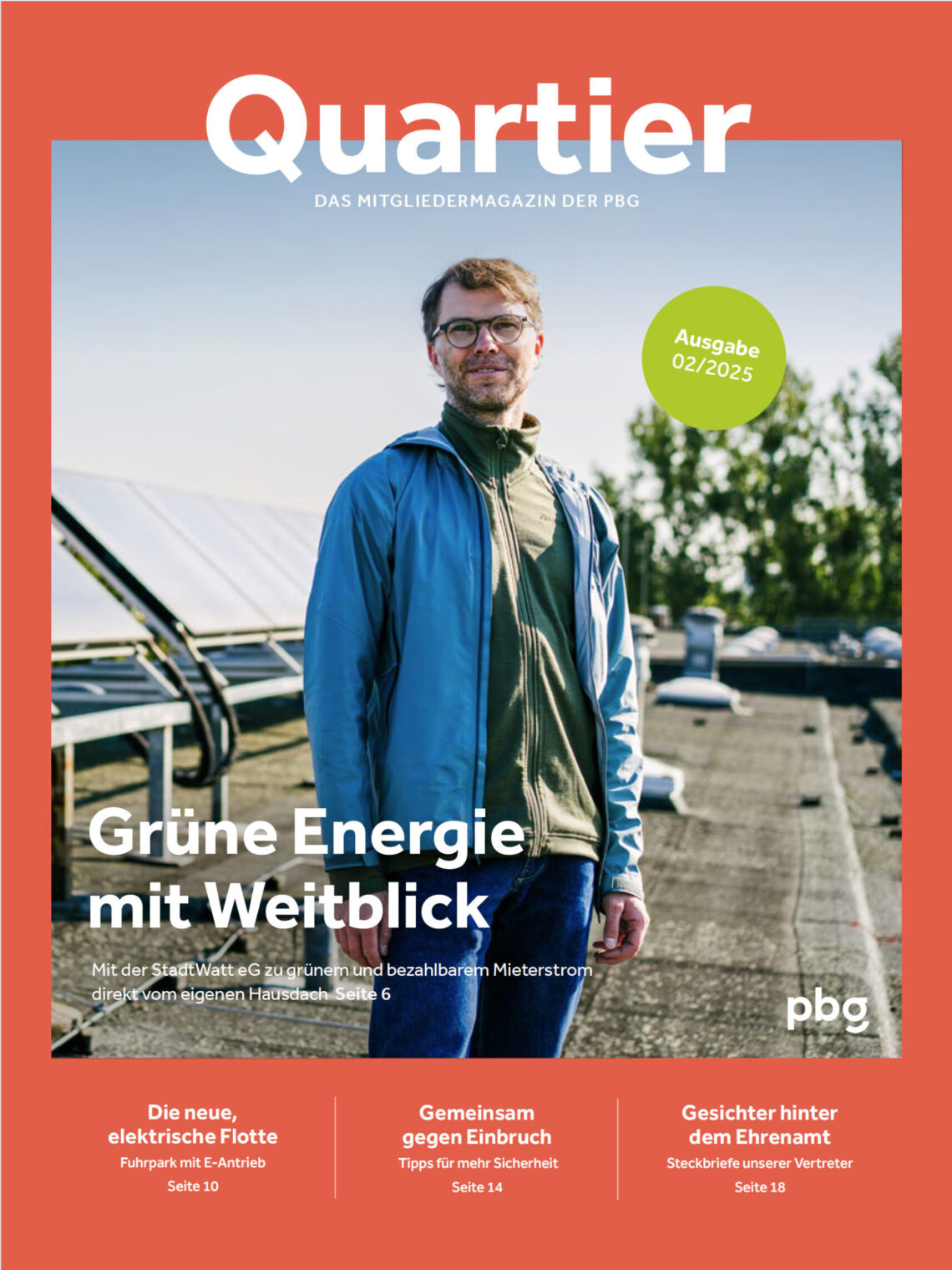 In unserem Mitgliedermagazin „Quartier“ berichten wir über Nachbarschaftsaktionen, aktuelle Projekte, ehrenamtliches Engagement und das Zusammenleben in den Quartieren. Wir interessieren uns für die Geschichten der Mitglieder – und wollen damit den Austausch untereinander fördern. Viel Freude beim Lesen!