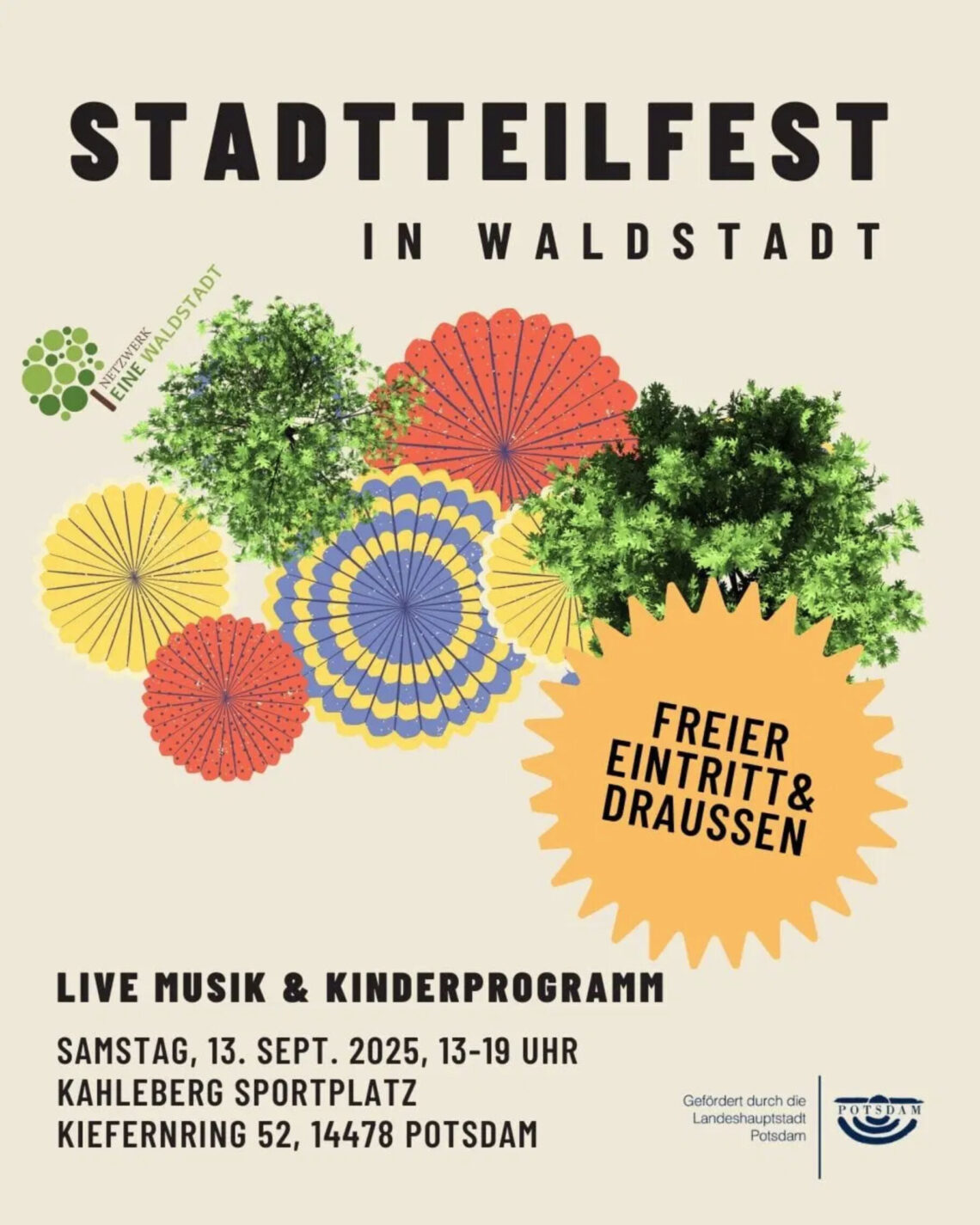 Am Samstag, den 13. September 2025, lädt das Netzwerk EINE Waldstadt zum alljährlichen Stadtteilfest auf den Sportplatz Kahleberg ein. Zwischen 13 und 19 Uhr erwartet die Besucherinnen und Besucher ein buntes Programm für die ganze Familie – bei freiem Eintritt und unter freiem Himmel.